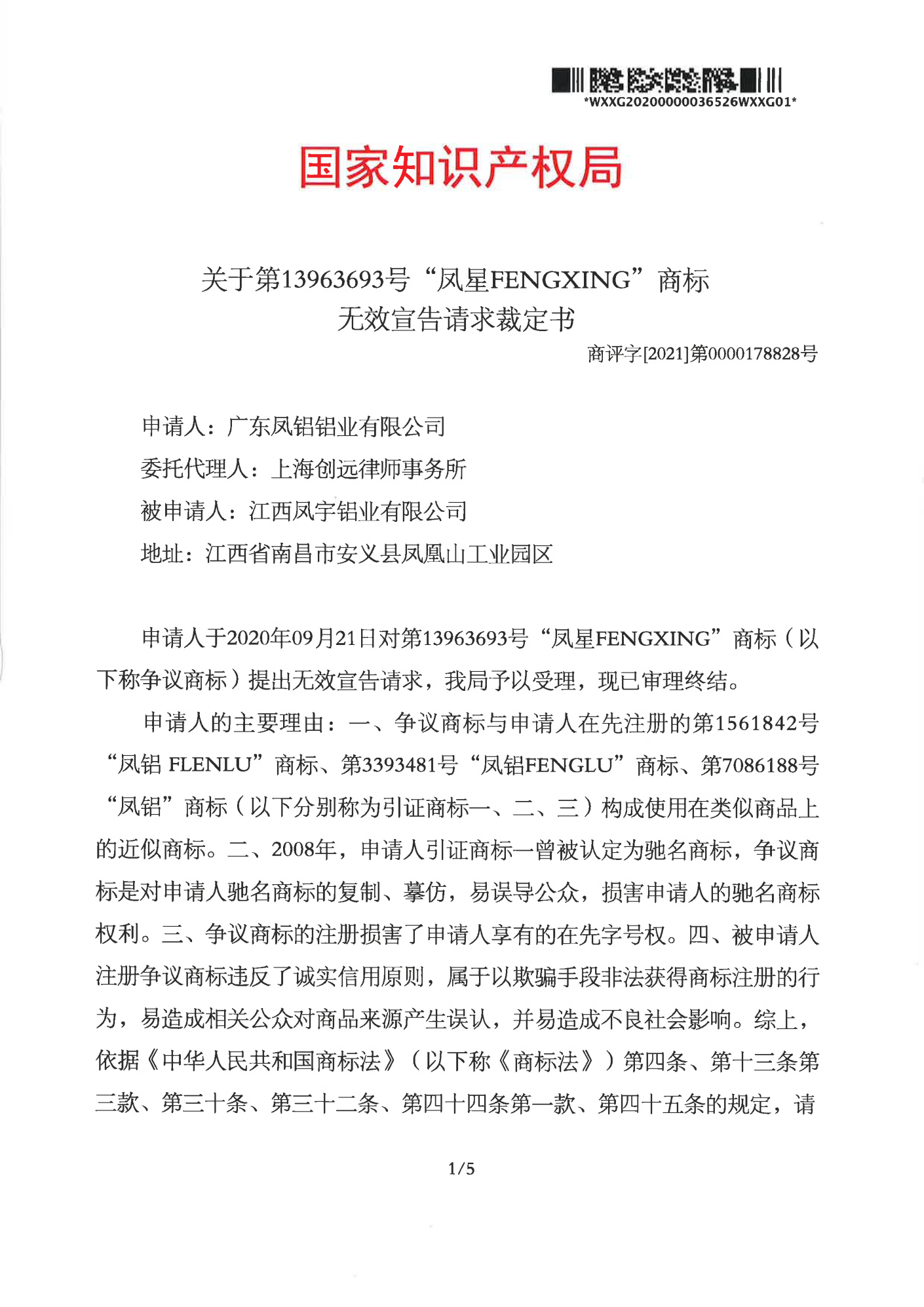 西宁辉知队 | 国家知识产权局:“凤星”商标无效