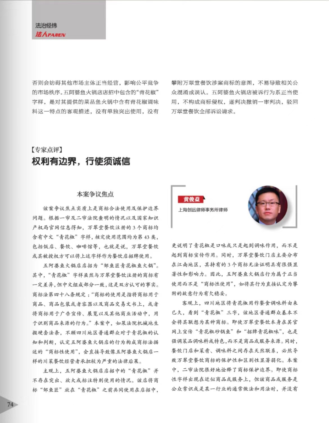 西宁辉知简讯 | 辉知队黄俊益律师应“法治日报”旗下杂志邀请,就“青花椒”案发表专家点评